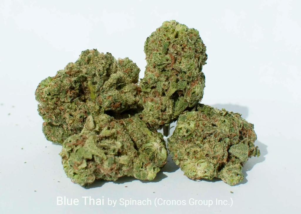 - Blue Thai by Spinach is a sativa-dominant strain that offers a refreshing, energizing smoke with fruity sweetness and bold citrus flavors.
